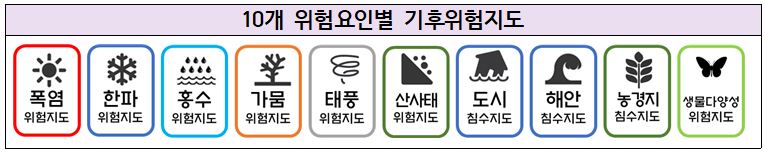 ㅇ 폭염‧한파 등 10개 위험요인별 기후위험지도 제공 및 종합정보플랫폼 구축