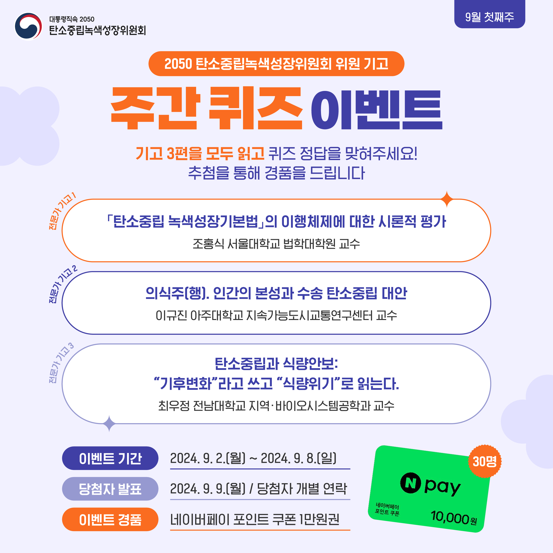ㅇ 칼럼과 관련한 퀴즈 이벤트는 인스타그램(www.instagram.com/2050cnc)이나 블로그, 페이스북 등 탄녹위 SNS 계정을 통해 참여할 수 있으며, 추첨을 통해 매주 30명을 선정해 소정의 상품을 증정할 계획이다.
