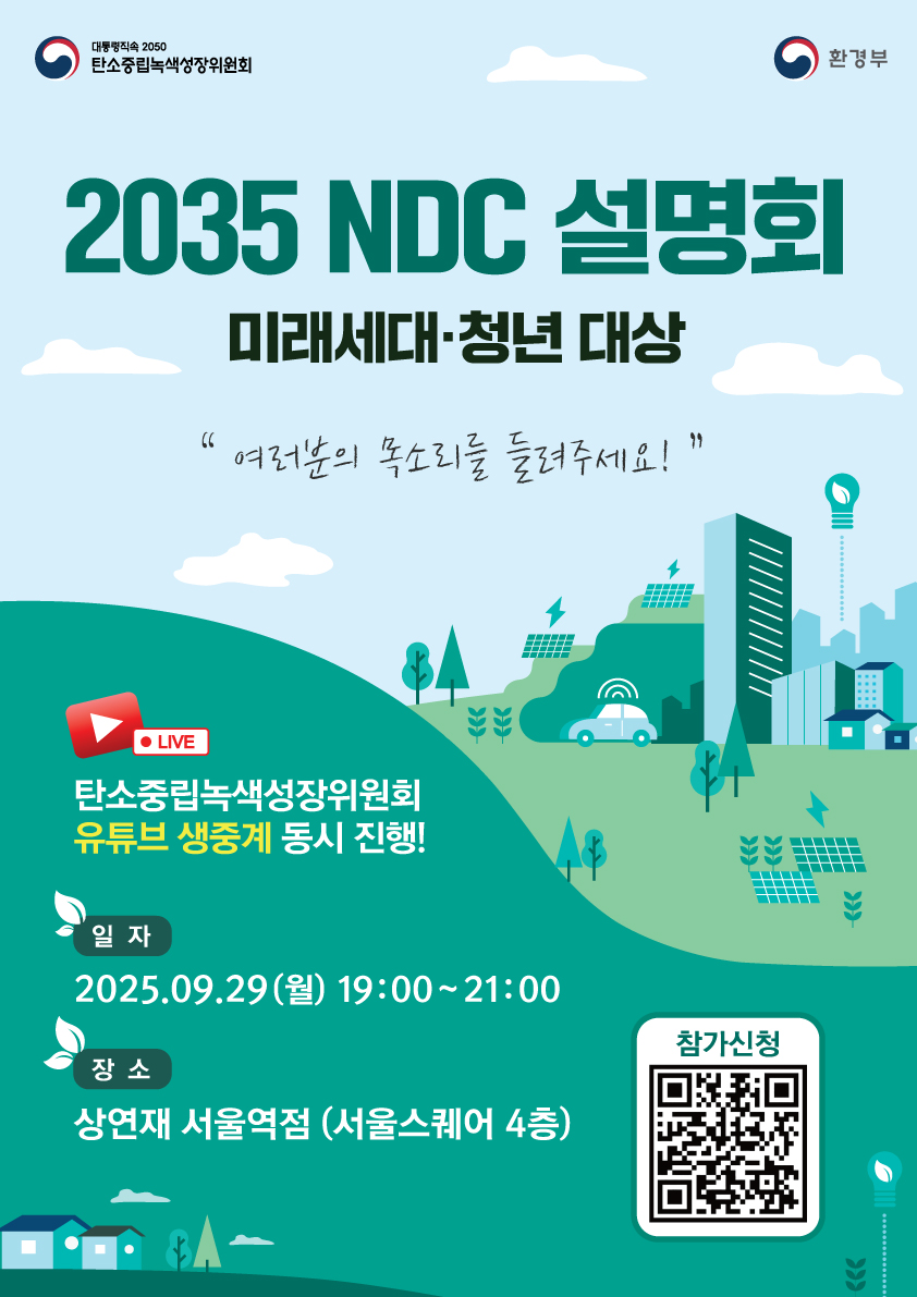 탄녹위에서 진행하는 미래세대·청년 대상 「2035 NDC 설명회」 개최 소식 전해드립니다.