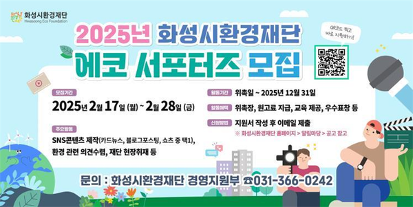 화성시환경재단이 환경 보호와 지속 가능한 미래를 위해 활동할 ‘2025 에코 서포터즈’를 모집한다.