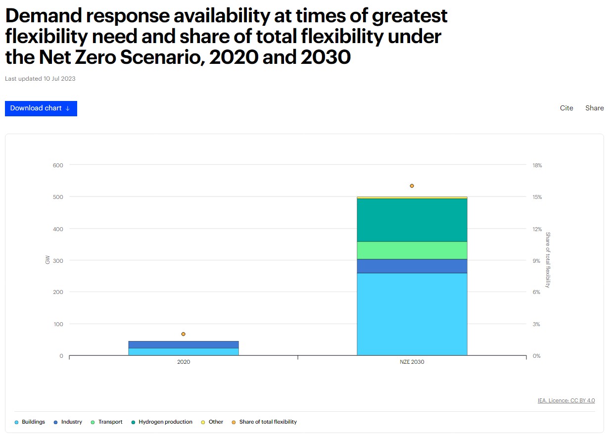 우리가 사용하는 전기가 점점 화석 연료(기저부하)로부터 신재생에너지(첨두부하)로 다변화되고 있기 때문에 ‘간헐성’문제에 자주 노출될 수 있습니다. 이러한 수요반응(DR)과 같은 유연성이 점점 더 중요해지고 있습니다. 2020년 기준 전 세계적으로 약 50GW의 수요반응을 가지고 있고 2030년까지 용량을 500GW를 목표로 하고 있다고 합니다.