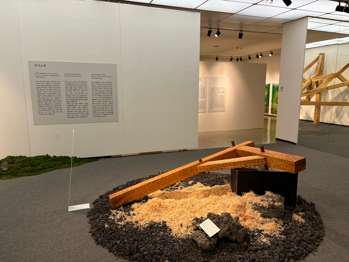 <나무의 시간: 내촌목공소 남희조 허회태> 전시 관람을 위해 지난 9월 8일 예술의전당 한가람미술관을 찾았습니다. 본 전시는 미술관 최초로 목공소와 예술가 간 협업을 시도하여, 단순한 예술적 성취를 넘어 자연과 인간의 연결을 경험하게 하고 조화를 모색하는 데 중점을 두고 있습니다. 힘과 깊이가 있는 가구를 만드는 내촌목공소와 동서양 문화를 융합해 작업하는 남희조 작가, 서예와 현대미술의 접목을 통해 ‘이모그래피(Emography)’라는 예술 장르를 창시한 허회태 작가 간 만남을 통해 ‘그린 무브먼트(Green movement)’와 지속 가능한 친환경적 예술에 대해 고민해 보게 합니다.