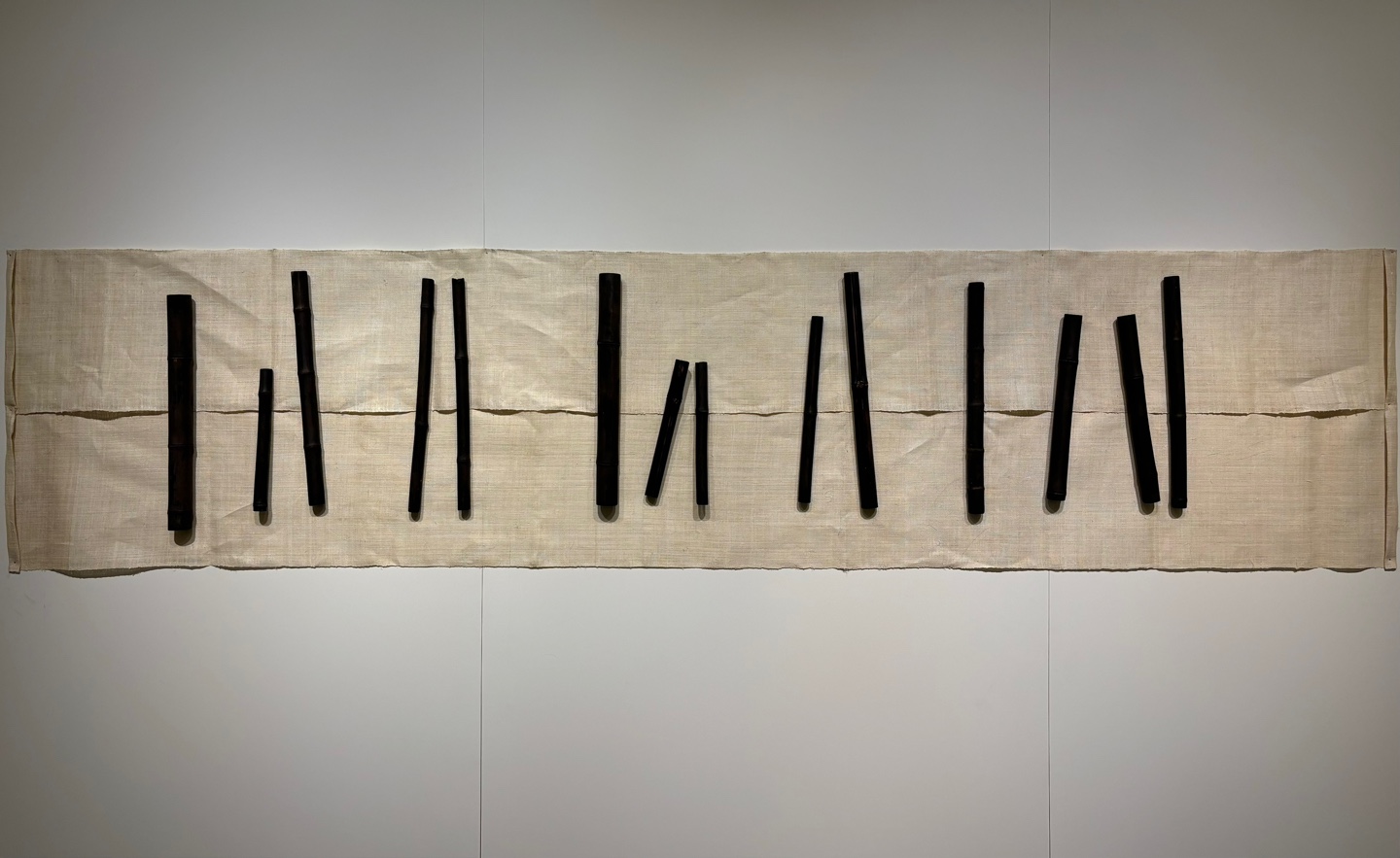 남희조, Empty and Fullness, 2024, Hemp, Burnt Bamboo, 293×68cm (사진=김호정 기자)