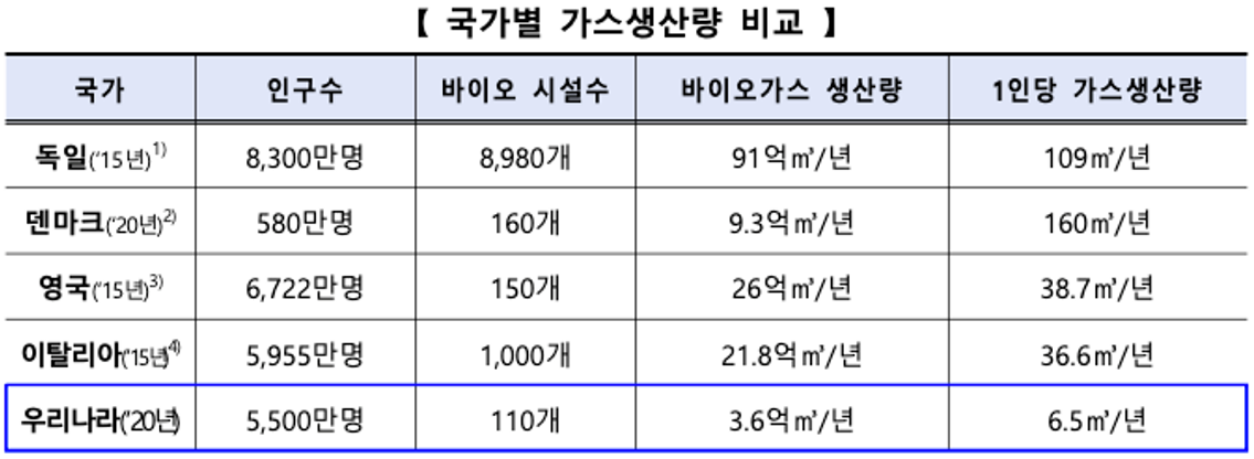 국가별 바이오가스 생산량 비교 (사진=환경부)