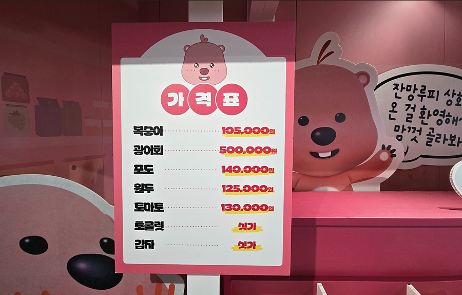 ‘2050 잔망루피 상회’로 꾸며진 곳도 있었습니다. 같은 상품인데도 가격은 현재와 매우 달랐는데요. 토마토가 130,000원, 포도가 140,000원, 감자가 시가로 적혀 있었습니다. 더욱이 충격적인 문구. ‘종로구 유일한 토마토 취급 마트’라는 문구가 붙어 있었는데요. 큰 지역에서 토마토를 사려면 모두 이곳으로 와야 한다고요? 정말 탄소중립이 제대로 되지 않아 이런 미래가 되는 건 상상하기도 싫네요.