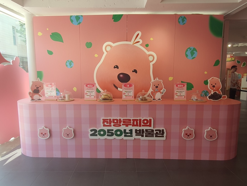 체험관의 하이라이트 중 하나는 잔망루피의 추억의 사생활을 주제로 한 전시였습니다. 이곳에서는 탄소중립 실천이 이루어지지 않을 경우 2050년 우리의 일상이 어떻게 변할 수 있는지에 대한 경각심을 일깨워 주었습니다. 예를 들어, 이상기후로 인한 농산물 가격 상승을 체험할 수 있는 물가 상승존에서는 포도 한 송이가 14만원이 되는 미래를 가상 체험할 수 있었습니다.