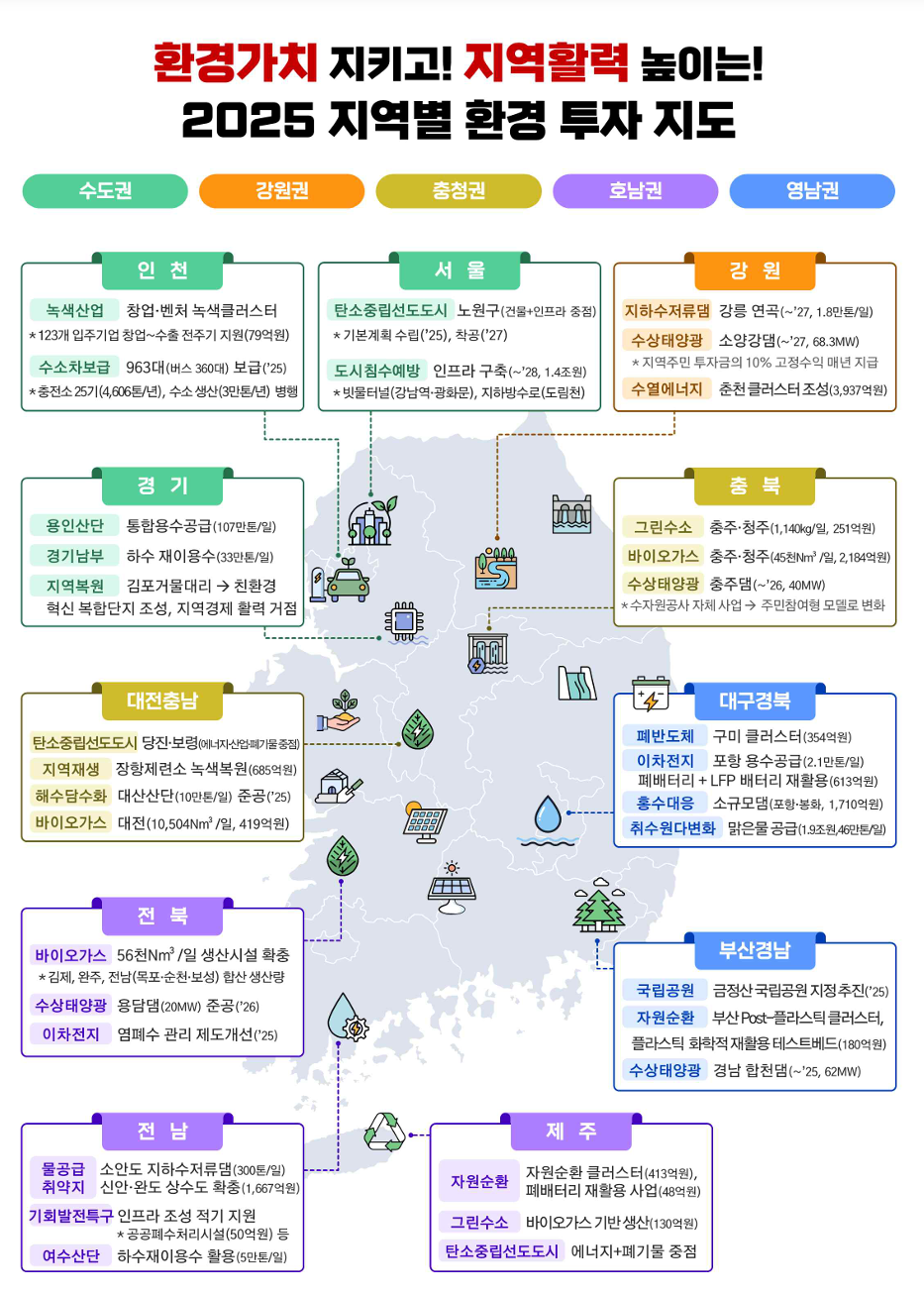 이에, 2025년 상반기에는 지역별 특성을 고려한 탄소중립 선도도시 조성과 지역특화 녹색산업클러스터 활용이 본격화되었습니다. 당진(에너지+산업 유형), 제주(에너지+폐기물 유형), 보령(에너지+폐기물 유형), 노원(건물+인프라 유형) 4곳에 탄소중립 선도도시를 조성해, 기후 위기 대응과 지역경제 활성화를 도모하고자 했습니다. 더불어, 포항에는 전기차 배터리 클러스터를 준공하고, 구미에는 폐반도체 재활용 녹색융합클러스터를 착공하는 등 지역특화 녹색산업클러스터를 활용해 기후 기술 기업의 연구·실증·상용화를 지원하고자 했습니다.