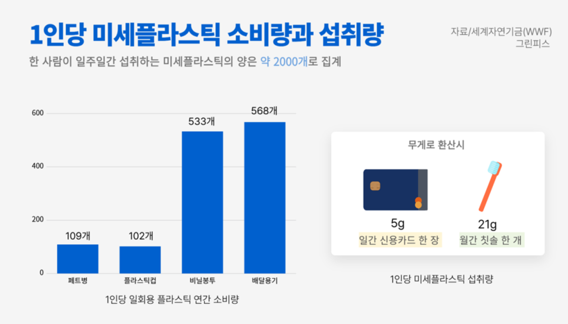 1인당 미세플라스틱 소비량과 섭취량(출처=세계자연기금(WWF) 그린피스)