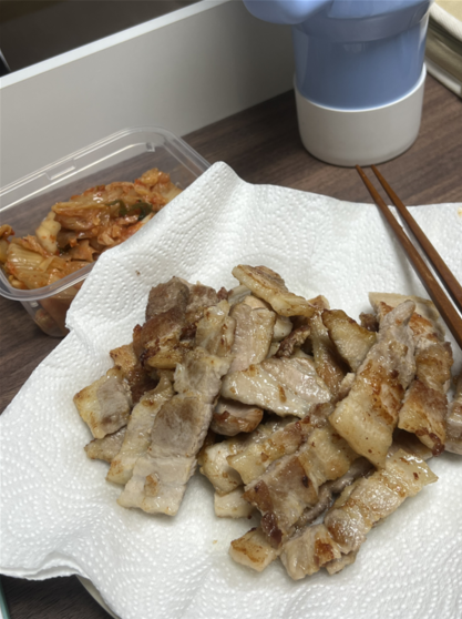 저녁에는 오랜만에 삼겹살을 구워 먹었다. 돼지고기는 다른 육류에 비해 배출량이 낮은 편이지만, 그래도 약 2.3kg이 발생했다. 이는 승용차 1대가 약 10km 주행할 때의 배출량과 비슷하다. 하루 식사 중 가장 큰 비중을 차지한 저녁이었다. 고기 섭취가 개인의 하루 탄소배출량에 얼마나 큰 영향을 미치는지 다시 한번 체감했다. 점심의 배출도 적지 않았지만, 저녁 삼겹살 앞에서는 가볍게 느껴졌다.
