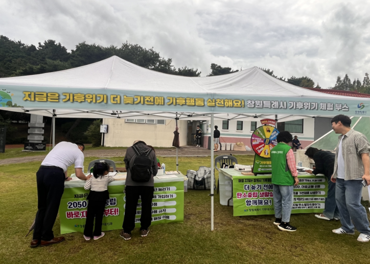 본격적인 행사 시작 전, 현장에는 시민이 직접 참여할 수 있는 탄소중립 홍보부스가 운영되었다. 창원특례시의 본부 부스에서는 기후행동 서약과 탄소중립 룰렛 돌리기, 홍보물 배포 등 참여형 프로그램이 진행되어, 시민들이 직접 다짐을 적고 생활 속 실천 방법을 배울 수 있었다.