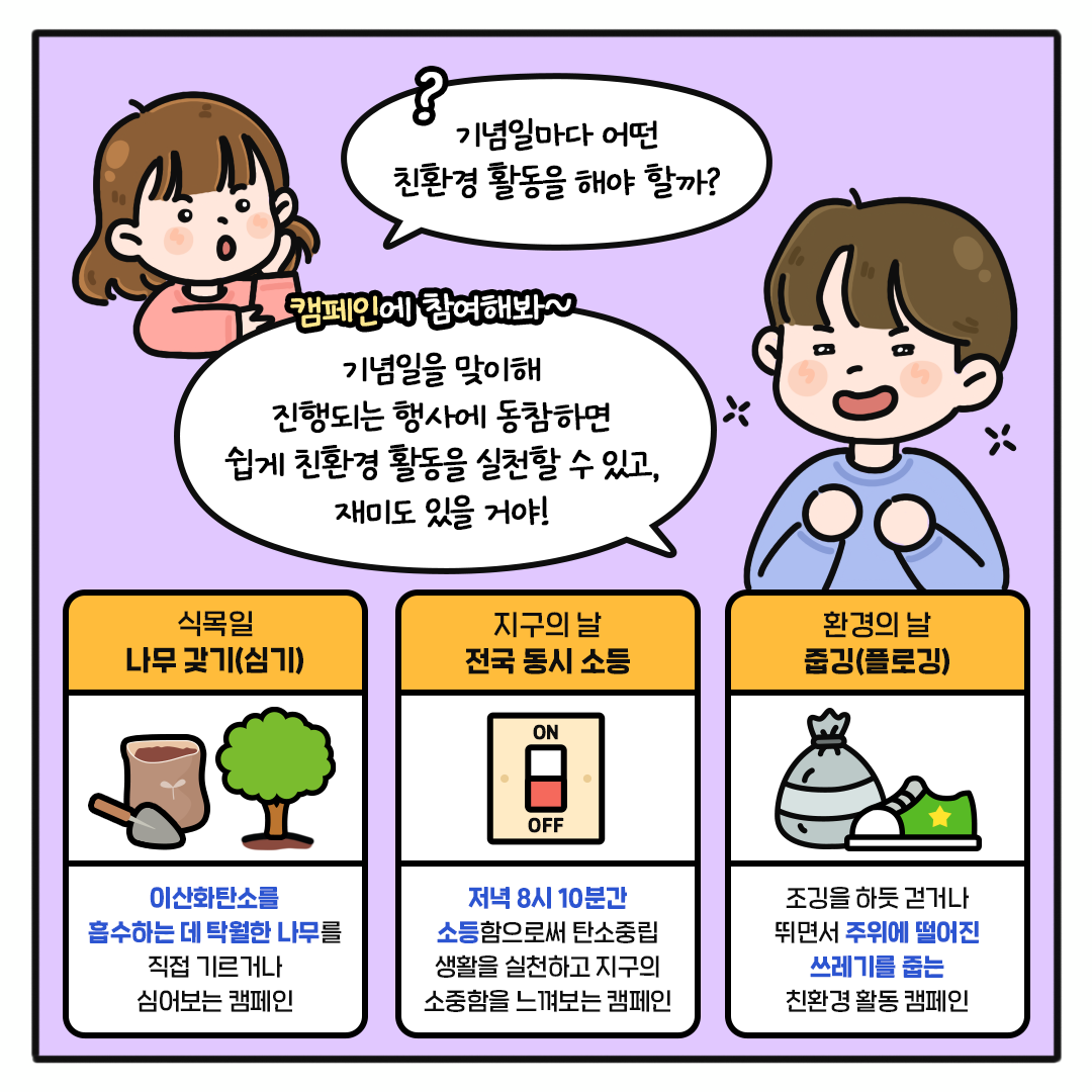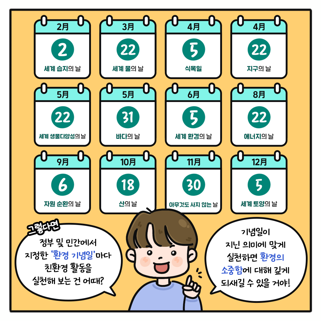 정부 및 민간에서 지정한 ‘환경 기념일’마다 친환경 활동을 실천해 보는 건 어떤가요?