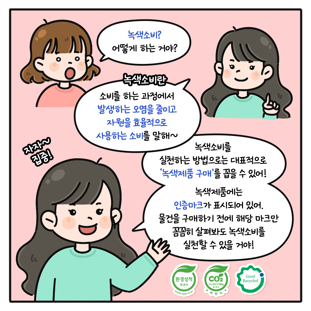 물건을 구매하기 전에 해당 마크만 꼼꼼히 살펴봐도 녹색소비를 실천할 수 있을 겁니다!