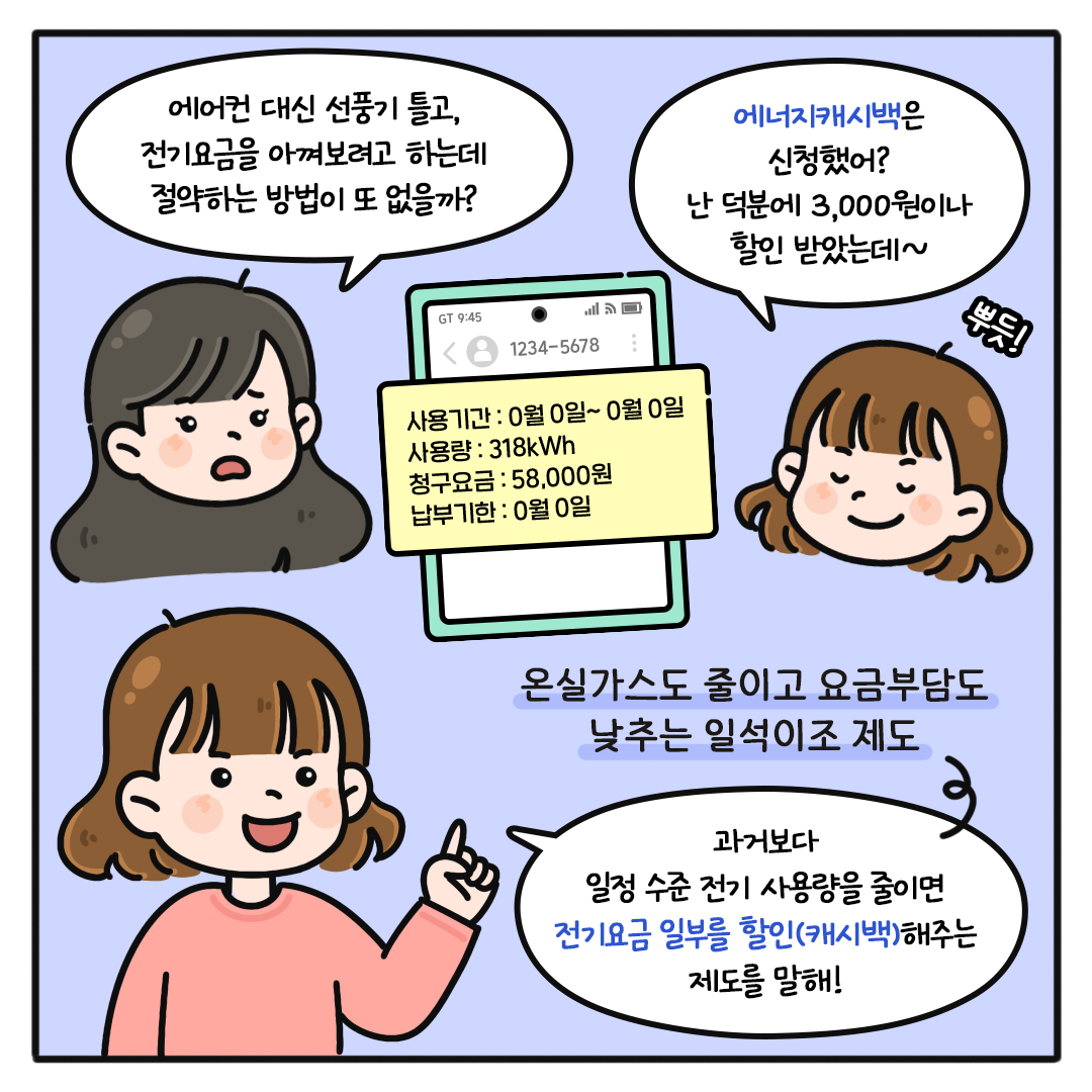 에너지캐시백 신청하고, 온실가스도 줄이고 요금 부담도 낮추세요!