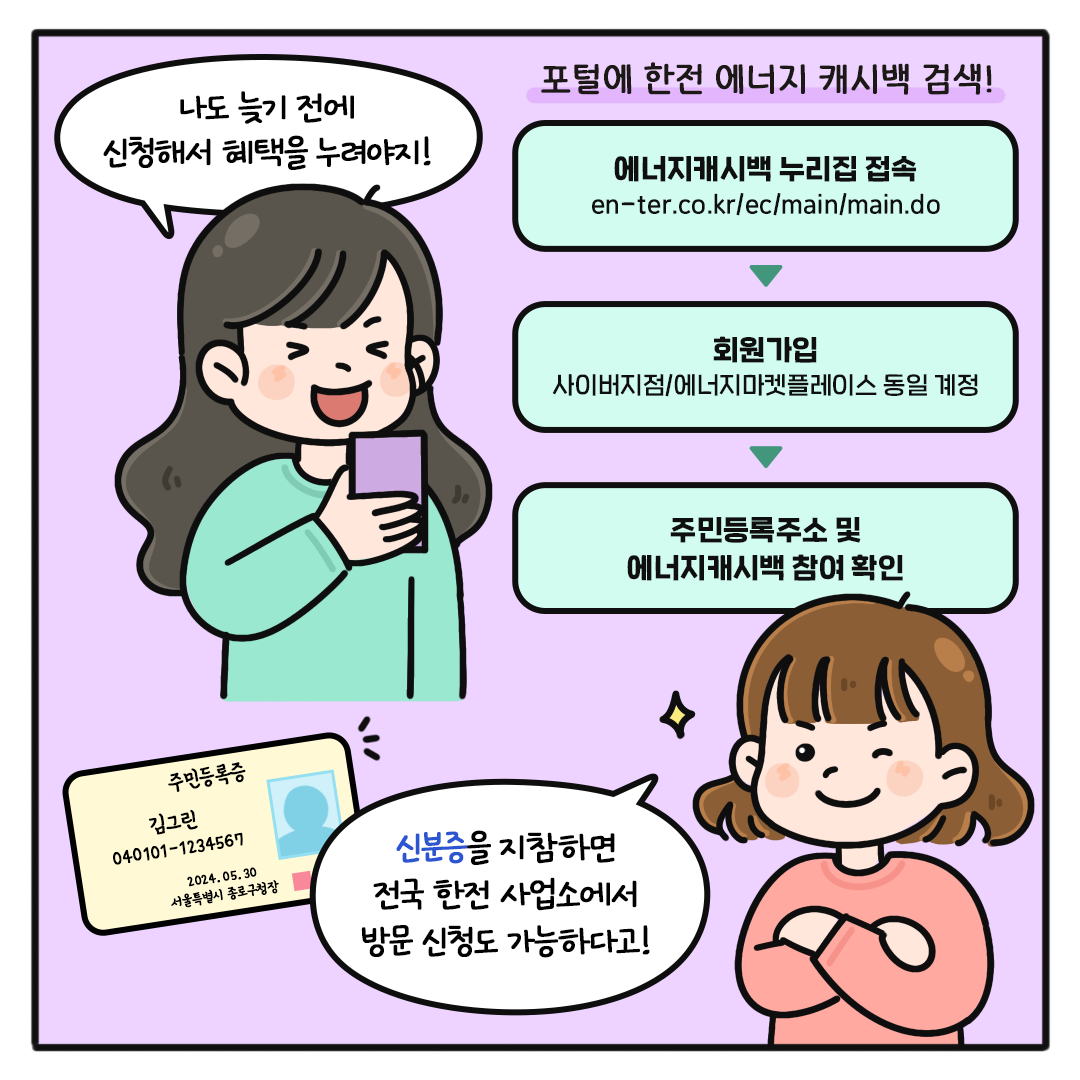 ※ 신분증(주민등록증, 운전면허증)을 지참하면 전국 한전 사업소에서 방문 신청도 가능!