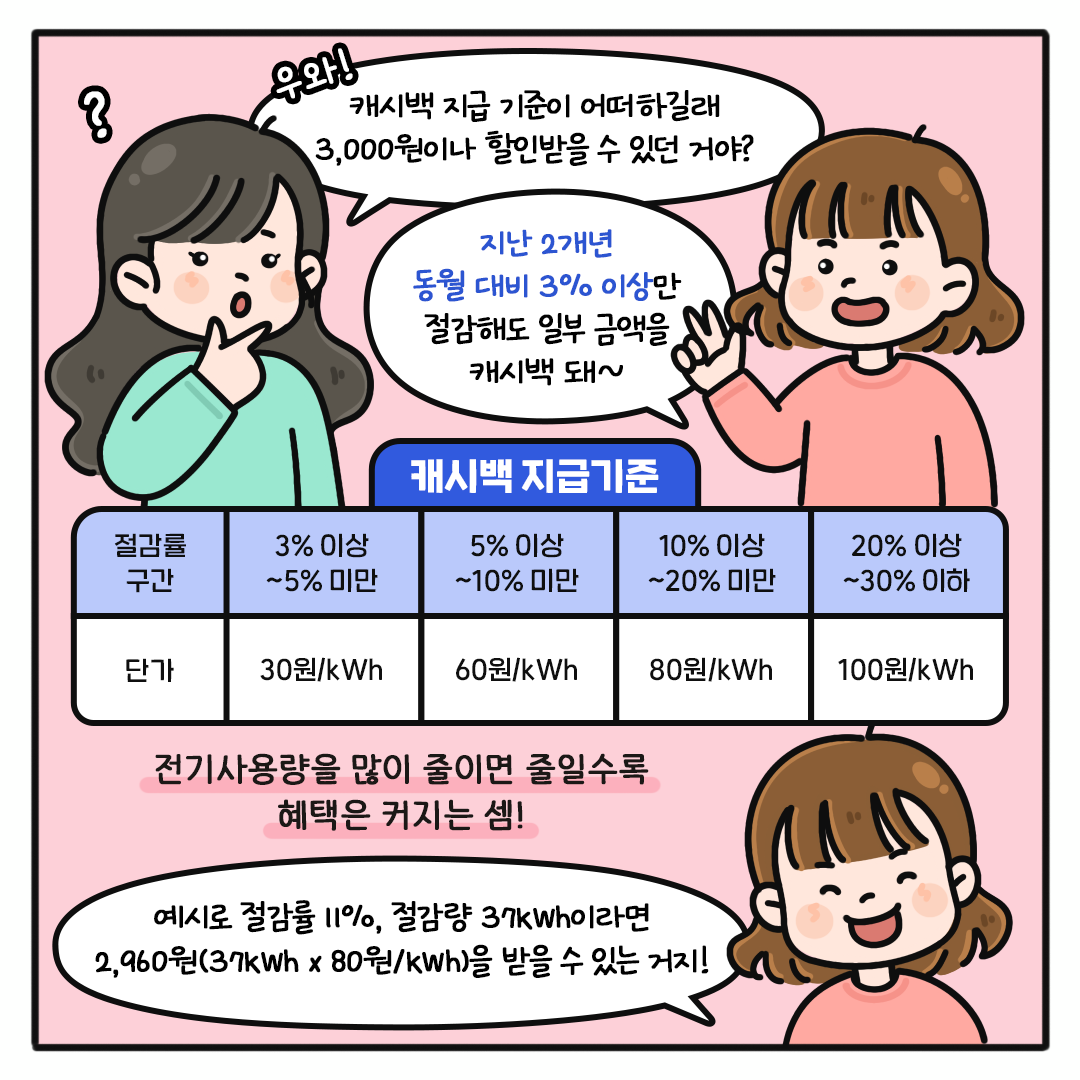 과거보다 일정 수준 전기 사용량을 줄이면 전기요금 일부를 할인(캐시백)해주는 제도!